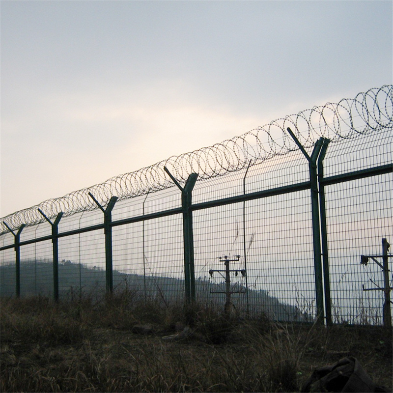機(jī)場護(hù)欄網(wǎng)又稱作“Y型安全防御護(hù)網(wǎng)”,是由V型支架立柱,加強(qiáng)型焊接片網(wǎng),安全防盜連接件和熱鍍鋅刀片刺籠組成強(qiáng)度和安全防御性級別很高。近年來,被廣泛應(yīng)用在機(jī)場,軍事基地等高安全場所。