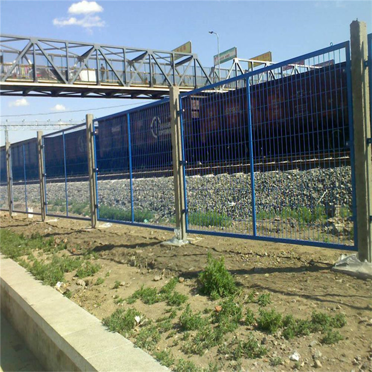 3、鐵路護(hù)欄網(wǎng)的規(guī)格材質(zhì):195低碳冷拔鋼絲。 4、護(hù)欄的立柱采用混凝土澆筑件,工程造價低。
