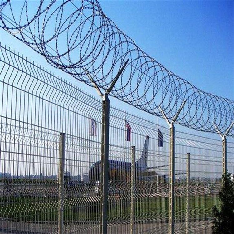 飛機(jī)圍界是做什么的?飛機(jī)圍界是機(jī)場(chǎng)邊界的重要保護(hù)措施,是為防止人為破壞,保證機(jī)場(chǎng)安全,讓飛機(jī)順利起飛的護(hù)欄產(chǎn)品,這種護(hù)欄網(wǎng)表面采用電鍍、熱鍍、浸塑、噴塑等處理方式,實(shí)現(xiàn)顏色多樣多化,在連接方式上采用特制SBS緊扣件,防止人為破壞拆卸,又在網(wǎng)片上加裝橫向四道折彎回強(qiáng)筋,使整體既美觀又實(shí)用。,機(jī)場(chǎng)圍界根據(jù)結(jié)構(gòu)分類,可以分為菱形網(wǎng)圍界和方孔鋼筋網(wǎng)圍界,區(qū)別就是二者的生產(chǎn)工藝不同,一種是用勾花網(wǎng)用作網(wǎng)板或斜方孔網(wǎng)片用作網(wǎng)板,另外一種是用鋼筋網(wǎng)片或電焊網(wǎng)片用作網(wǎng)板來(lái)制作機(jī)場(chǎng)圍界