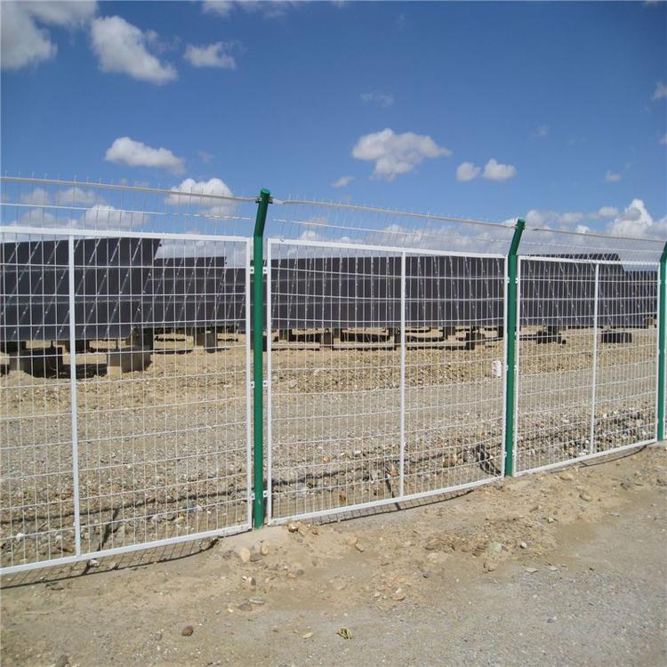 光伏站圍欄樣式:線徑:4.5mm 5.0mm、尺寸:90*170毫米、屏幕尺寸:1.8 * 2.5m、框架尺寸:20 * 30 * 1.5mm、立柱尺寸:48 * 2.0mm 60 * 2.5mm,安裝:1.嵌入式(柱高:2.2m)2.法蘭式機箱(柱高:1.9m)