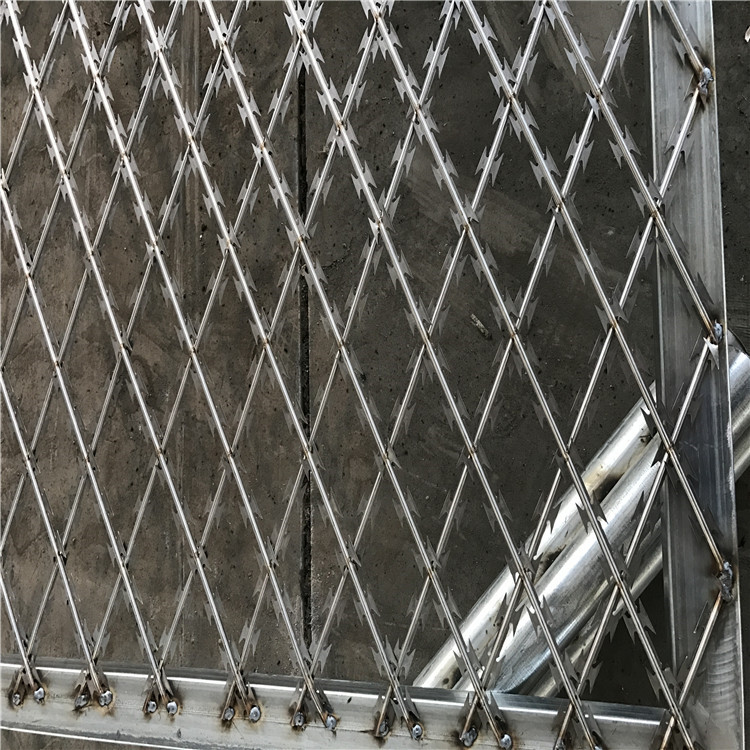 二、方形孔刀刺網(wǎng):這種刀片刺網(wǎng)的焊接方式與電焊網(wǎng)片是一樣的,但方形網(wǎng)孔的刀刺網(wǎng)的生產(chǎn)長度是有限制的,一般的方形孔刀刺網(wǎng)長度為3米或4米。