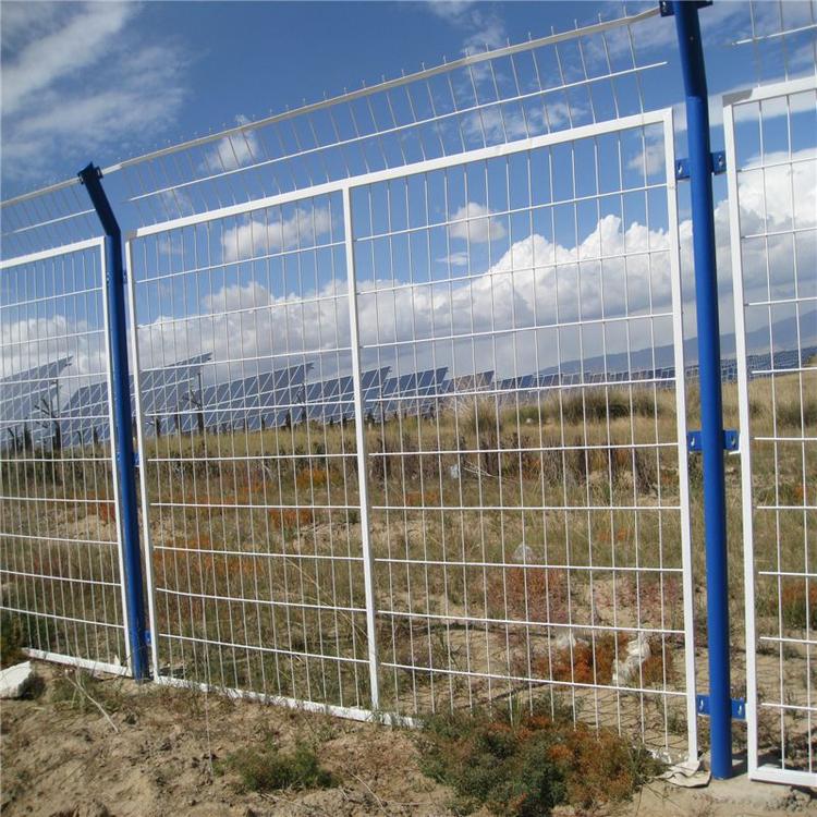 光伏場區(qū)防護(hù)網(wǎng)常見的形式主要就是框架隔離防護(hù)網(wǎng) 光伏電站圍欄不僅僅限于光伏電站圍欄,還可以用在多行業(yè)的圍墻、倉儲(chǔ)的防護(hù)和隔離。