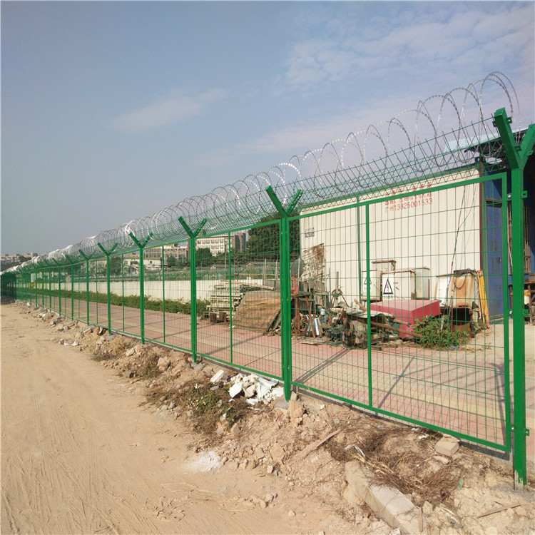V型支架刀刺網(wǎng)固定選用貫穿式銜接,每隔20米左右固定橫向拉絲,立柱必定要做調(diào)直處理,每20米校直一次,每100米誤差視點不大于6°,全體裝置無歪斜,護欄網(wǎng)全體呈直線狀況。網(wǎng)片菱形孔要求豎向擺放,網(wǎng)片有必要緊固、網(wǎng)面平坦漂亮,每單元網(wǎng)片每側(cè)不少于六個銜接點。