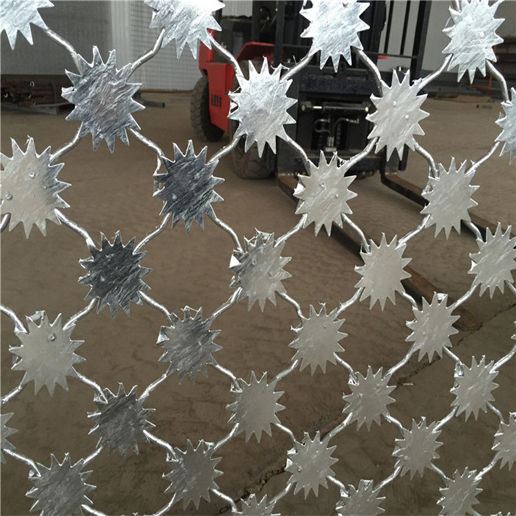 看守所圍網(wǎng)又稱作安全防御護網(wǎng),是由安全立柱(頂部可帶V型),加強型焊接片網(wǎng),安全防盜連接件和刀片刺籠組成,強度和安全防御級別很高。近年來,被廣泛應(yīng)用在監(jiān)獄,看守所,軍事基地等高安全場所。表面采用電鍍、熱鍍、噴塑、浸塑等防腐形式,具有很好的抗老化、抗曬、耐候等特點。這種看守所安全圍網(wǎng)造型美觀、花色多樣,既起到圍欄作用,又起到美化作用。由于具有安全性高、防攀爬能力好,網(wǎng)片連接方式采用特制SBS緊扣件,有效防止人為的破壞性拆卸,橫向四道折彎加強筋或四周焊接方管邊框,使網(wǎng)面強度顯著增加。