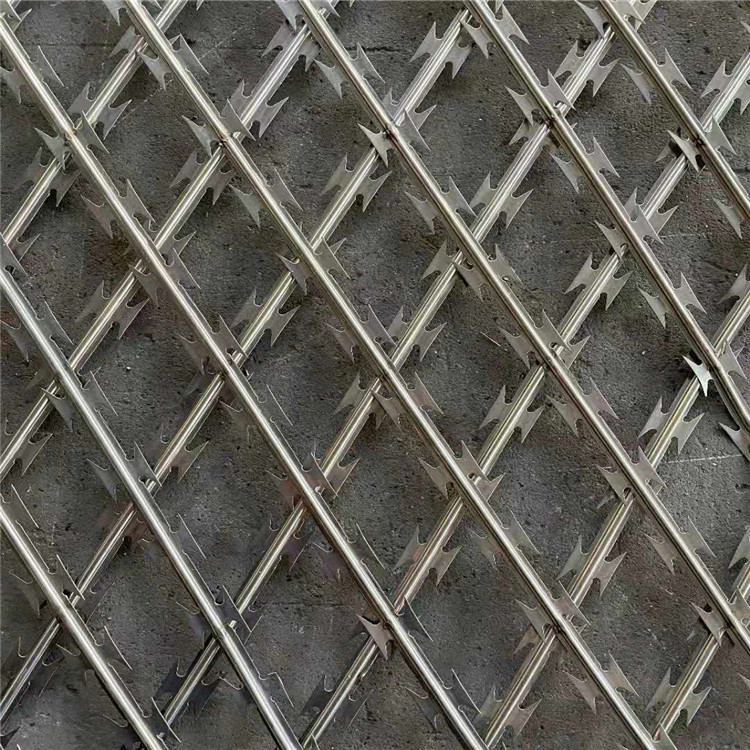 特點:焊接刀片刺網(wǎng)又名菱形刀刺網(wǎng),是一種近年發(fā)展起來的防護(hù)、隔離能力較強(qiáng)的新型防護(hù)網(wǎng)產(chǎn)品。它采用鋼板沖壓成型包附于鋼絲(筋絲)之上,由銳利尖角鍍鋅鋼板或不銹鋼薄板做刀片,高張力鋼絲做芯線組合而成的。鋒利的刀型刺由雙線扣裝后成蛇腹?fàn)睿让烙^又讓人不寒而栗。起到了很好的阻嚇作用。