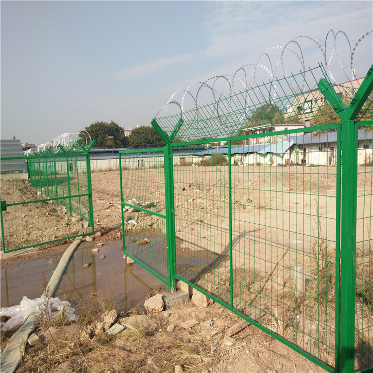 高度總體高度一般為:3米--4米高,立柱跨度間距為3米,邊框為20X30方管,也有使用30X30或者30X50的方管,網(wǎng)孔為:70X150mm、50X100、60X120等,絲徑為:4mm-6mm,立柱規(guī)格為:60X60、80X80、100X100方柱,V字高度為:50cm,立柱壁厚:2mm-3.5mm,法蘭盤規(guī)格為:200X200X10mm,整體全部采用鍍鋅材質(zhì)浸塑或者靜電噴涂。連接方式網(wǎng)片邊框打孔。立柱焊接邊耳用螺絲連接。頂部加焊大V字型網(wǎng)片,用來支撐蛇腹型刀刺網(wǎng),蛇腹型刀刺網(wǎng)材質(zhì)為熱鍍鋅或不銹鋼,使用壽命長,這樣組裝起來的監(jiān)獄隔離網(wǎng)堅不可摧。、