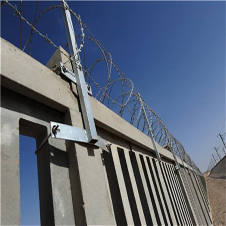 ??刺絲滾籠廠家將刺絲連接卡扣與固定在支架上的縱向拉筋相連接,縱向拉筋與支架的連接采用?2.5mm的冷拔鍍鋅鋼絲繞2圈后擰緊固定,支架設(shè)置在跨度3m防護柵欄的立柱和跨中位置,其他跨度僅設(shè)置與立柱上部,支架與防護柵欄采用支架抱箍連接。