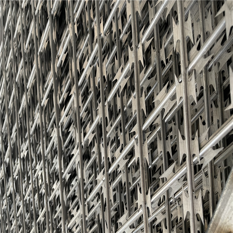 金屬鐵絲防爬護欄 菱形焊接刀片刺網 監(jiān)獄刀片鋼網墻