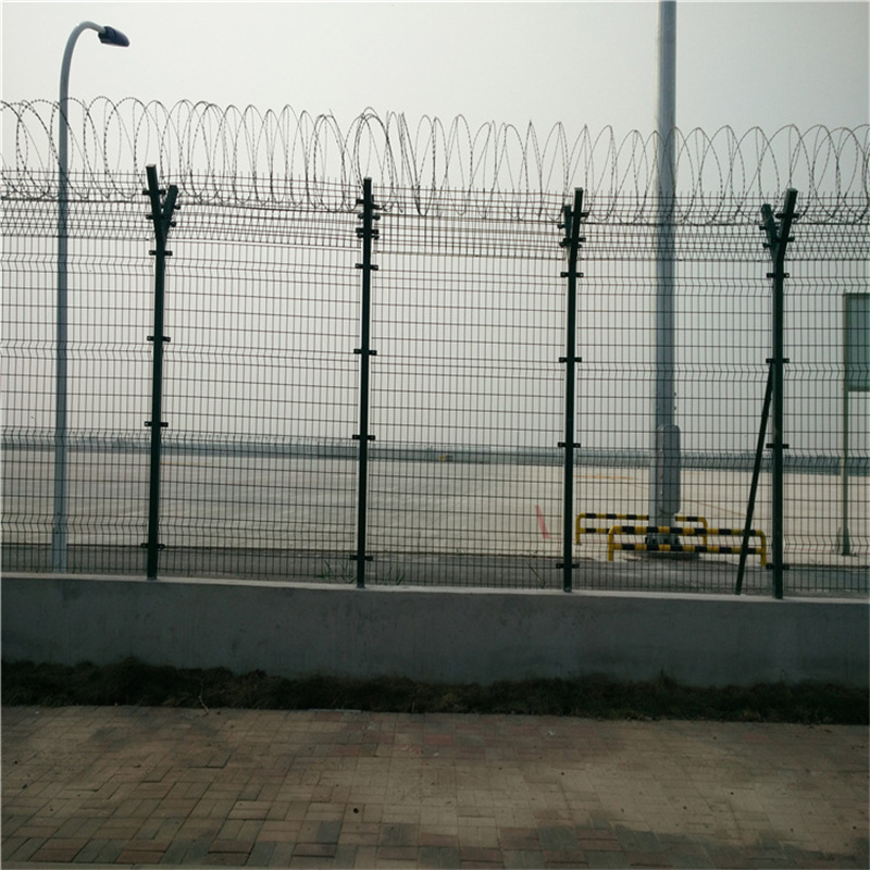 機(jī)場(chǎng)護(hù)欄網(wǎng)又稱(chēng)作Y型安詳防止護(hù)網(wǎng),鐵路護(hù)欄網(wǎng),是由V型支架立柱增強(qiáng)型焊接片網(wǎng),安詳防盜毗連件和熱鍍鋅刀片刺網(wǎng)構(gòu)成強(qiáng)度和安詳防