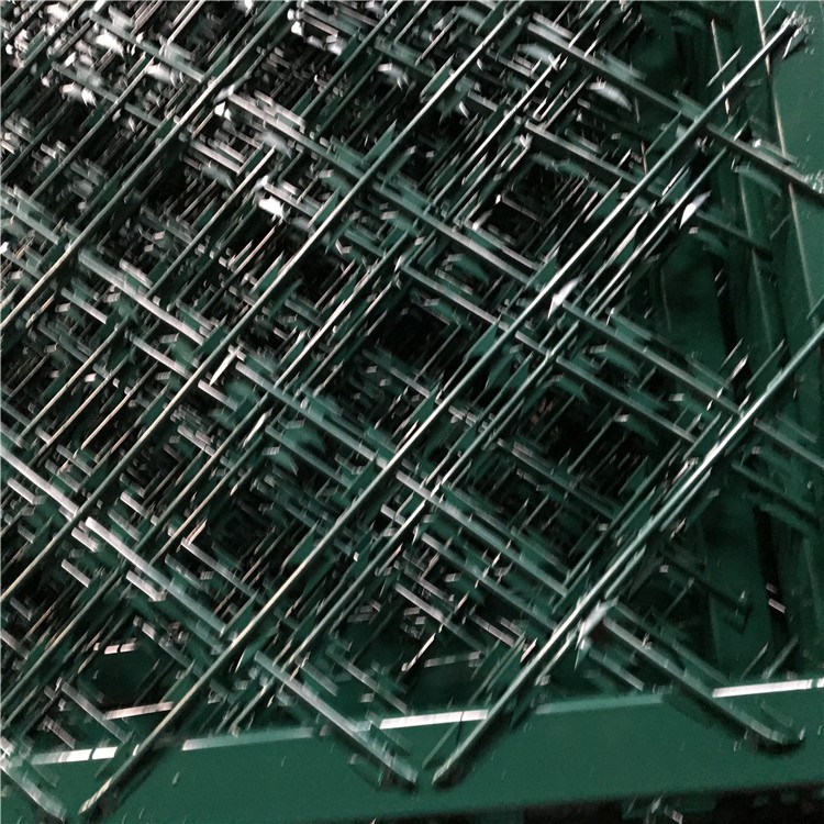 2,焊接刀刺網(wǎng)成型:把沖好的刀片裹在熱鍍鋅絲上面,經(jīng)調(diào)直達到預(yù)定的長度自動切斷,送入到模具內(nèi),排焊機把經(jīng)和緯相交叉的部分,沖過電流焊接到一起,數(shù)控電機拉動網(wǎng)片前進一格,達到網(wǎng)片的長度后,排焊機自動停止工作,一張焊接好的刀片刺繩網(wǎng)片,就完成了,