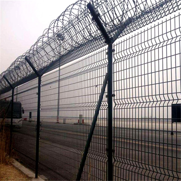 機(jī)場(chǎng)圍界材質(zhì):優(yōu)質(zhì)低碳鋼絲。網(wǎng)孔:50*50mm、50*100mm等也可按照具體要求定制。立柱:Y型、方形管、圓形管、桃形柱,采用5mm以上的高強(qiáng)度低碳鋼絲焊接。頂端:加裝刀片刺繩、刺絲、刺網(wǎng)。表面:電鍍、熱鍍、浸塑、噴塑、粉末靜電噴涂。網(wǎng)片中帶有V型加強(qiáng)筋,增加了圍網(wǎng)的沖擊力。