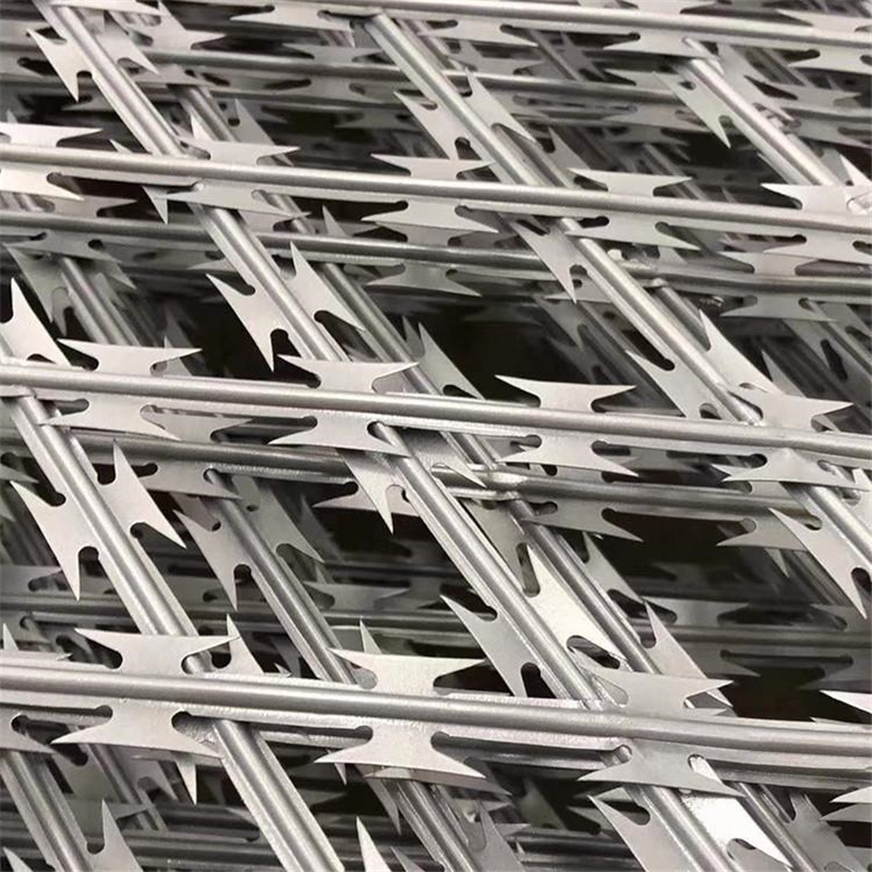 監(jiān)獄刀片鋼網(wǎng)墻產(chǎn)品技術參數(shù),主要是由熱鍍鋅鋼板或不銹鋼薄板沖壓而成的,它擁有尖銳的刀片,高張力鍍鋅鋼絲或者不銹鋼絲做芯線組合而成的產(chǎn)品。由于刺網(wǎng)的形狀很特別,而且每個角度都有尖狀刀片,因而能達到極好的防御保護效果。產(chǎn)品具有結構新穎、堅固緊密、網(wǎng)面平整、網(wǎng)孔均勻、刀鋒銳利、防攀爬、防腐蝕性強等特點。建設于監(jiān)獄的內(nèi)外墻地面及高墻之上,網(wǎng)墻內(nèi)側或頂部加裝蛇腹形刀刺網(wǎng),形成一道高不可攀、難以逾越的隔離障礙。